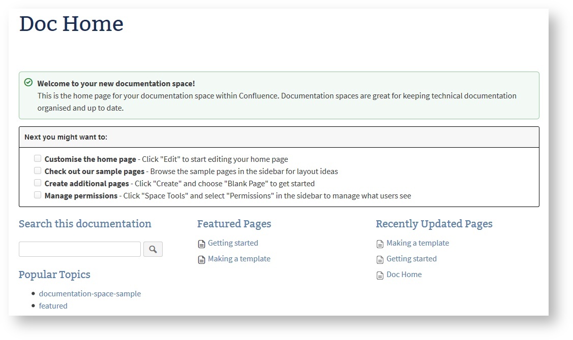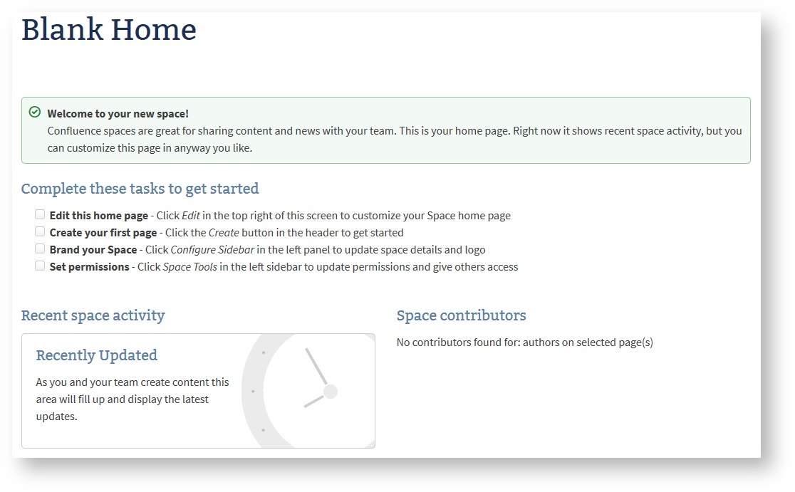 If you are creating spaces frequently it makes sense to invest on creating space blueprints that match exactly you needs. Teams may then create a space and start working on their task immediately. There is no need to manually adjust the created space and remove parts of the sample content.