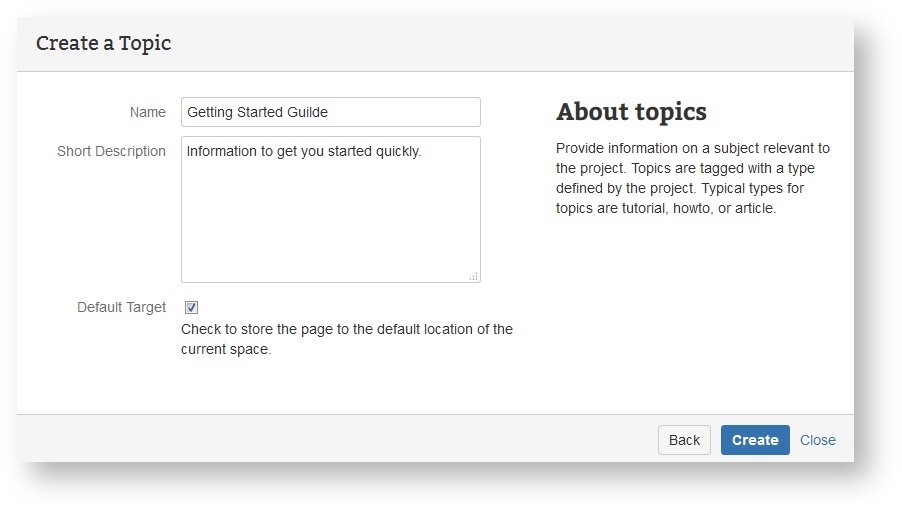 Spaces are a great tool to evolve and refine knowledge or to accumulate information on a given topic. You may also work collaboratively with your team to create user information on one of your products.