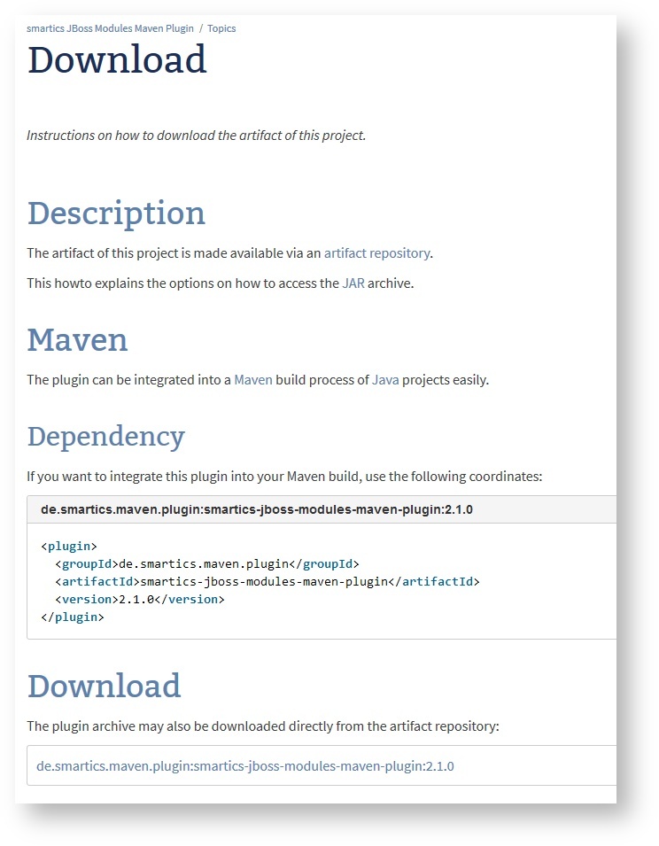 The space blueprint for Maven plugins also creates a page with information on how to download the plugin.
