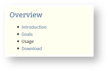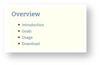 The space provides links to generates pages that inform users about goals and how to download the plugin.