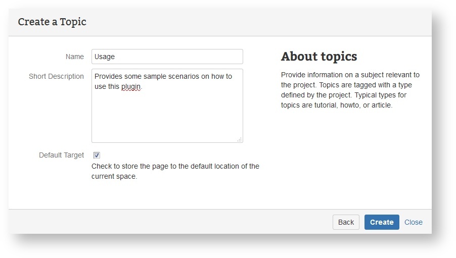 Here is another example that walks you through a space blueprint to create user documentation for Maven plugins.