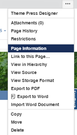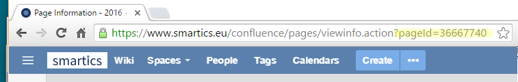 Query a newly created projectdoc document for its properties. To build such a query you need the ID of the projectdoc document. An easy way to get the ID of a document is to navigate to the Confluence page, since the page ID matches the document ID. Use the Confluence search and than click the "Page Information" action from the menu and copy the page ID from the URL: