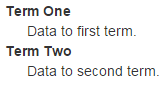 Every term and data has to be on one line. The line has to start with a semi-colon (';'). The first colon (':') separates the definition term from the definition data.