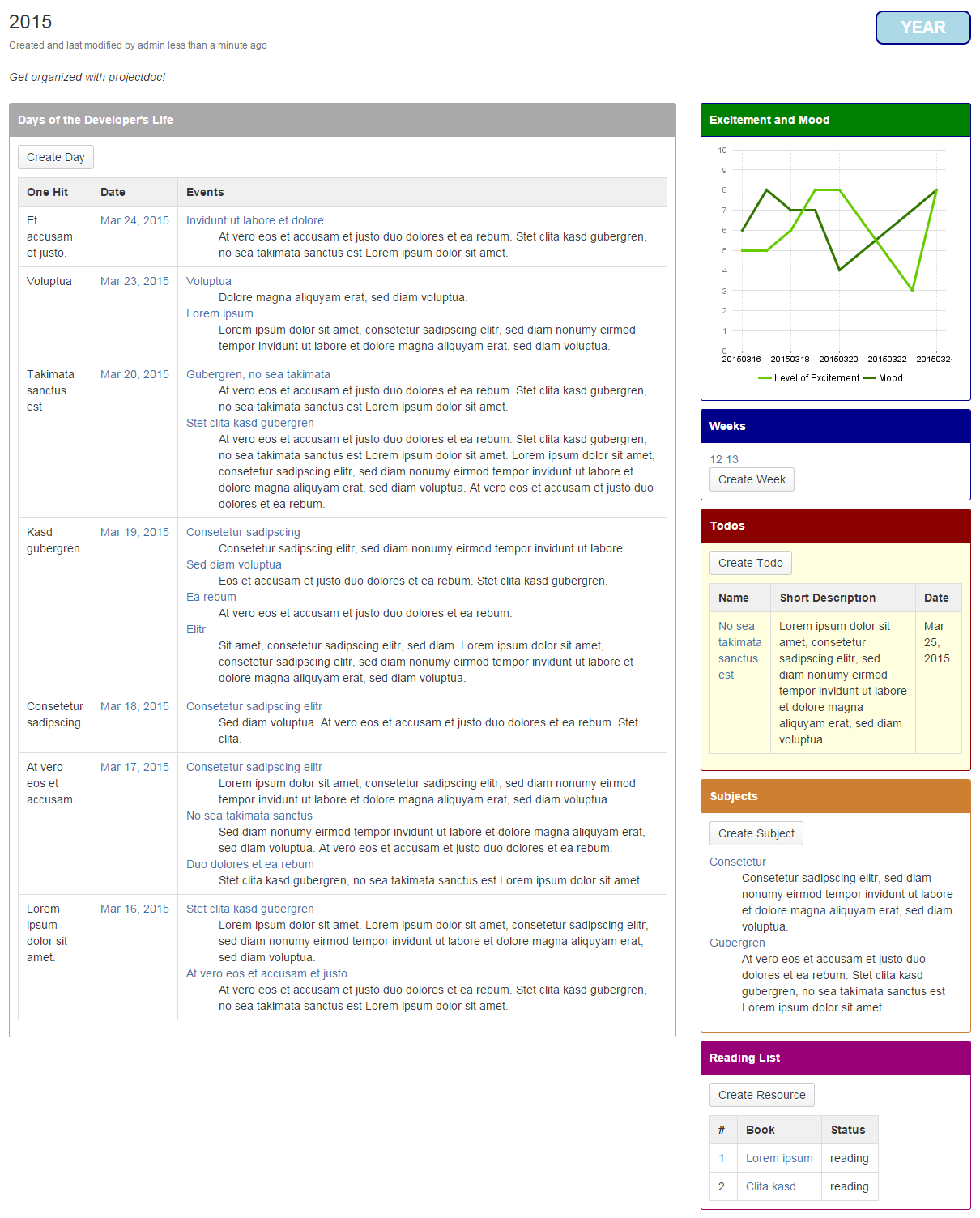 Provides doctypes to organize the developer's work by the employment of a diary. Take you personal planning and professional records to the next level! | |