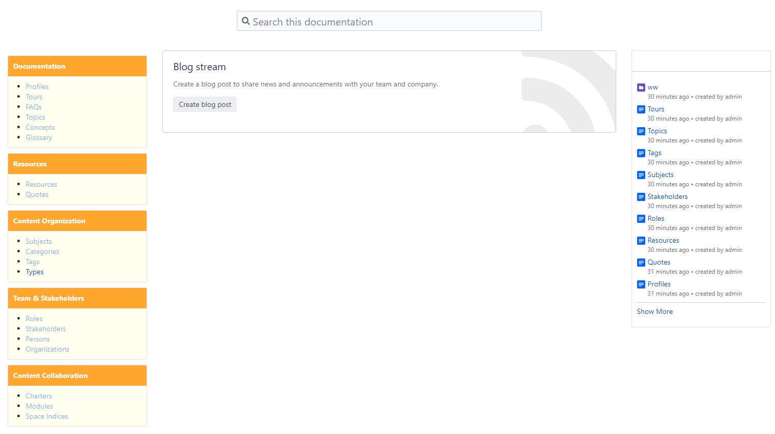 This provides the basic structure to add new documents easily by the use of home and index pages. This is how the space looks like: