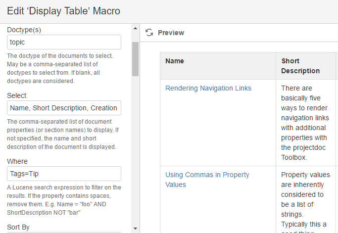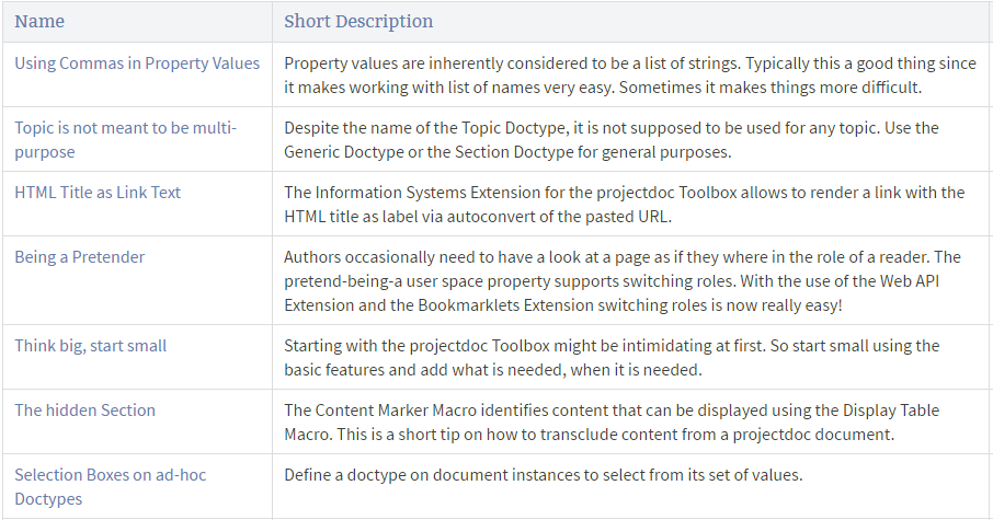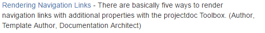 There are basically five ways to render navigation links with additional properties with the projectdoc Toolbox.
