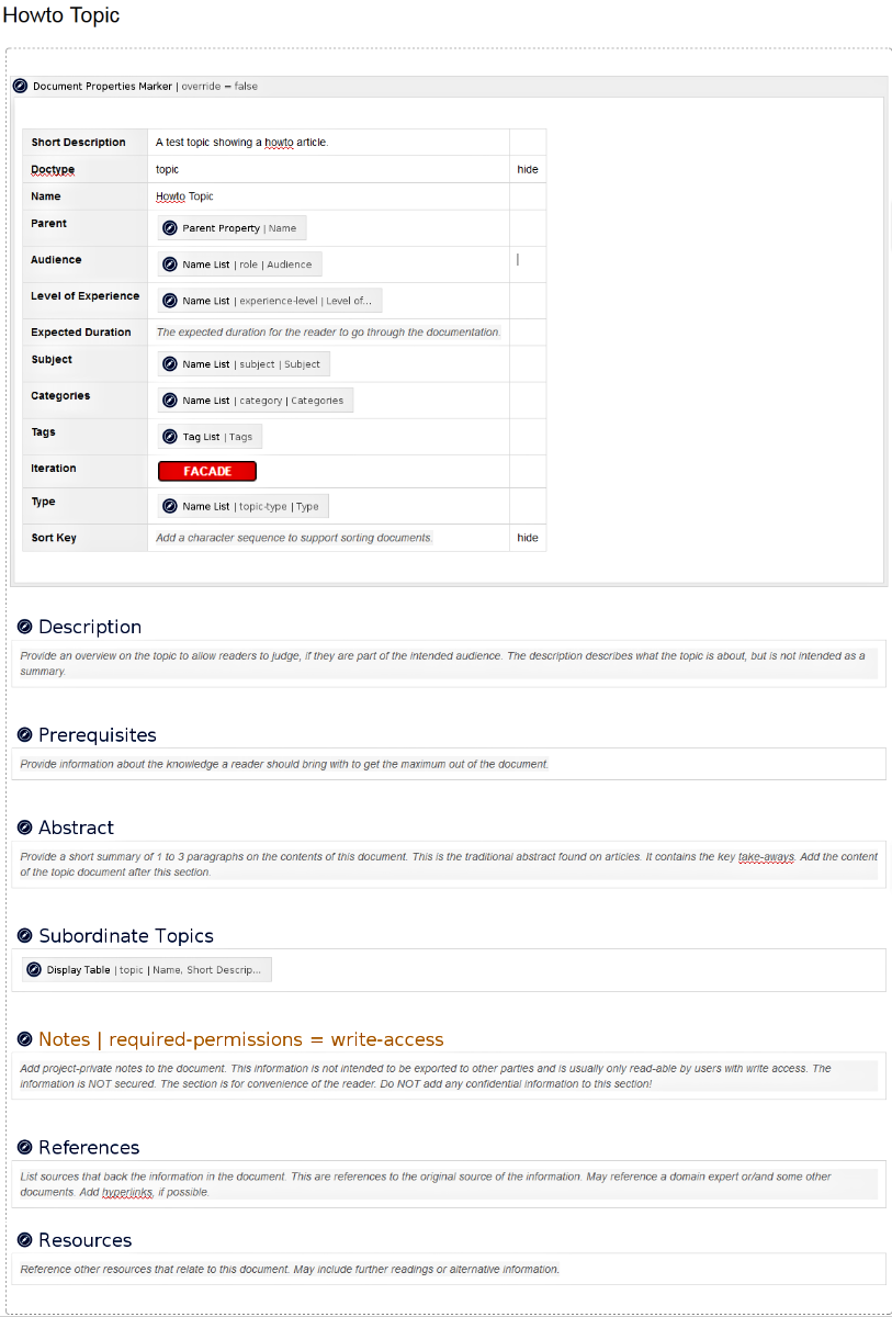 If the content is empty, the section will not be rendered. This macro is an essential element for template authors. The structure of a template for a document type can be defined so that document authors have guidance which information to place where. But as long as no content is provided by the document author, the reader of the document is not distracted by empty sections.