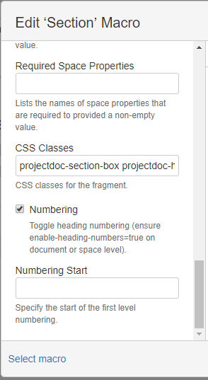 If space default is selected, the behavior is controlled by the space property Apply Properties to Content (projectdoc.macro.content-marker.apply-document-properties).