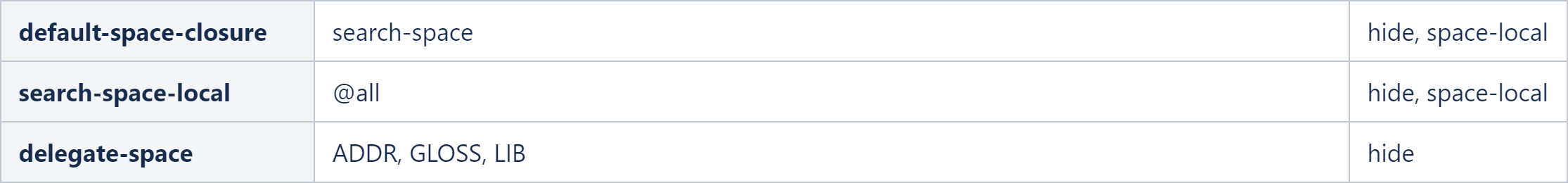 Readers should know what space properties are and how they are used. Please refer to Using Space Properties on how to employ space properties.