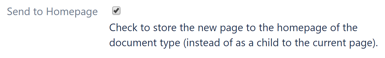 No matter which page in a space of this configuration a user is visiting, when creating a new document, the send-to-homepage function of the page blueprint wizard will find the correct location for this new document.