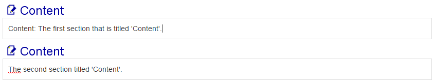If you have a document with identical titles, it is still possible to transclude the individual sections. Confluence ensures that each heading on a page is unique. This is required by the HTML 5 standard. projectdoc use this service to also make sections unique. Therefore a title that occurs a second time on the same page is suffixed with '.1'. The next with '.2', '.3', and so on.