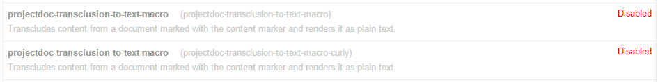 Since not every environment permits the transclusion of content as plain text due to security considerations, this macro is disabled by default.