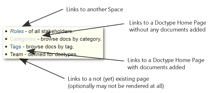 - If it points to a home page of a doctype without an index page, the class projectdoc-no-docs is added automatically (see Render No Docs Style).